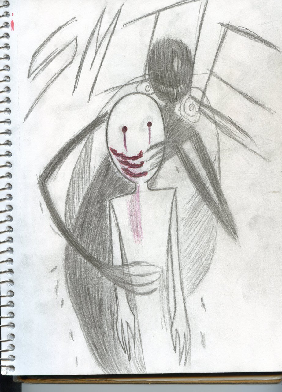 A sample of my artwork, it should be noted I've never taken an art class, and doodle stuff like this during boring lectures. I do have a scanner should I actually want a decent picture of something, but I'm too lazy to actually start it up right now.