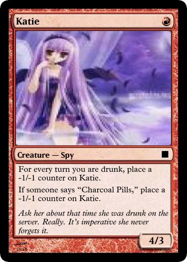I could totally see my card being all like, "1/1, when another creature comes into play, sacrifice HybridPuppy." You know...if it was ever made. Which it won't.