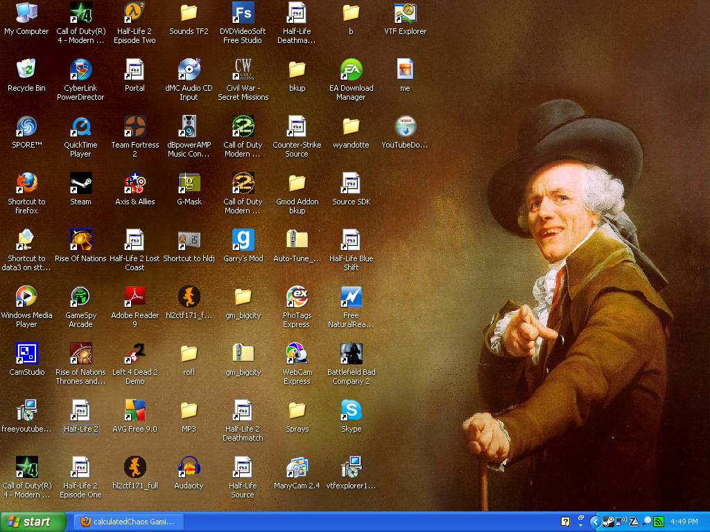 lots of stuff bad about my desktop, one, its cluttered, lots of stuff i dont need, and two, notice how a bunch of steam games are missing their icons, anyone know where my icons went? 0_o