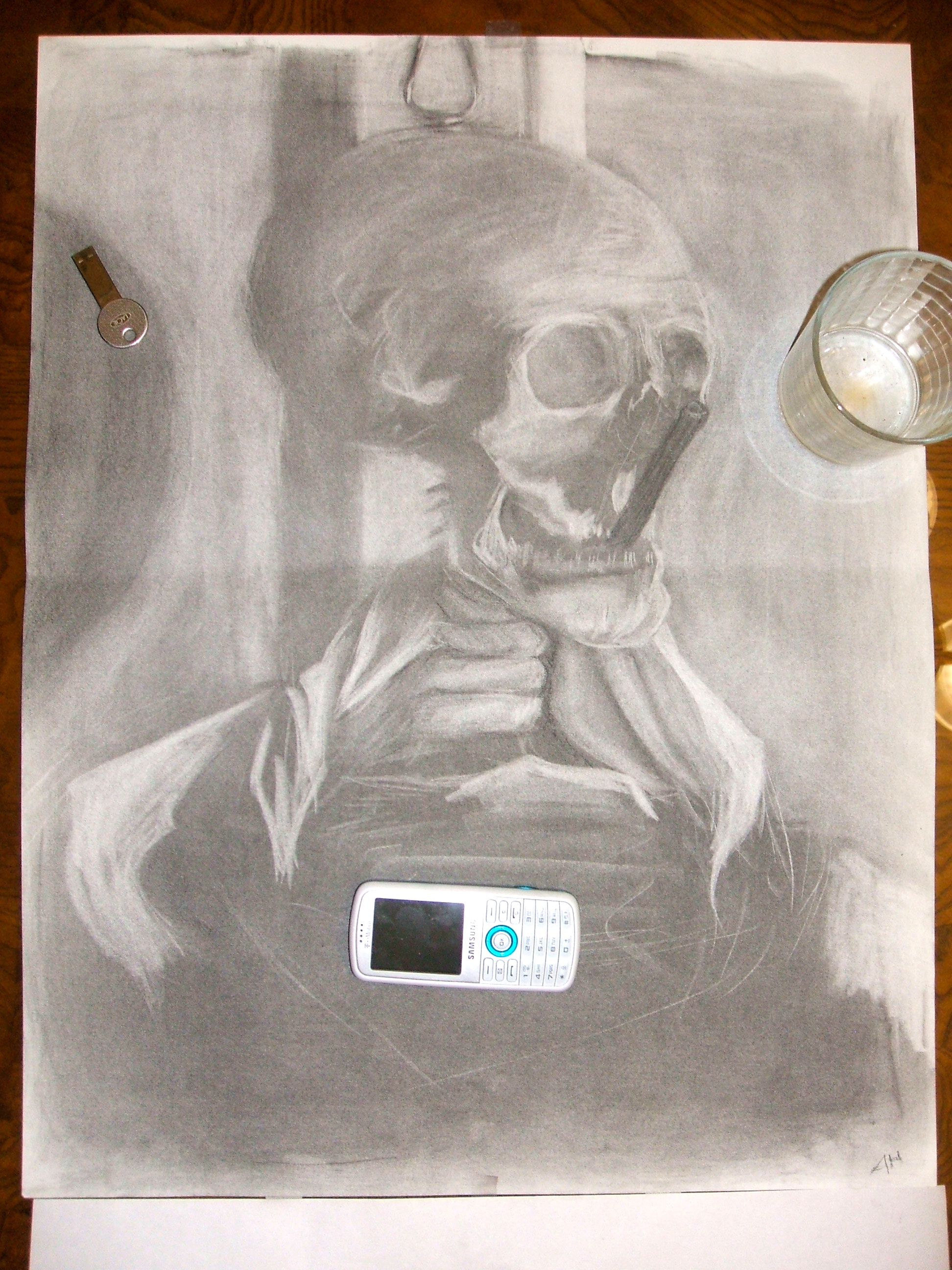 a skeleton we had to draw. smoking a cigar lol.