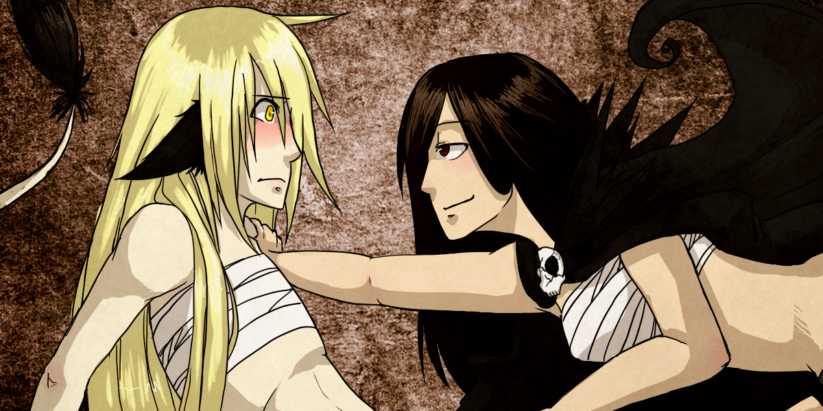 This one was a collaboration between me and my friend, I did the line art and the flat coloring of it. It's my character on the left and her character on the right.