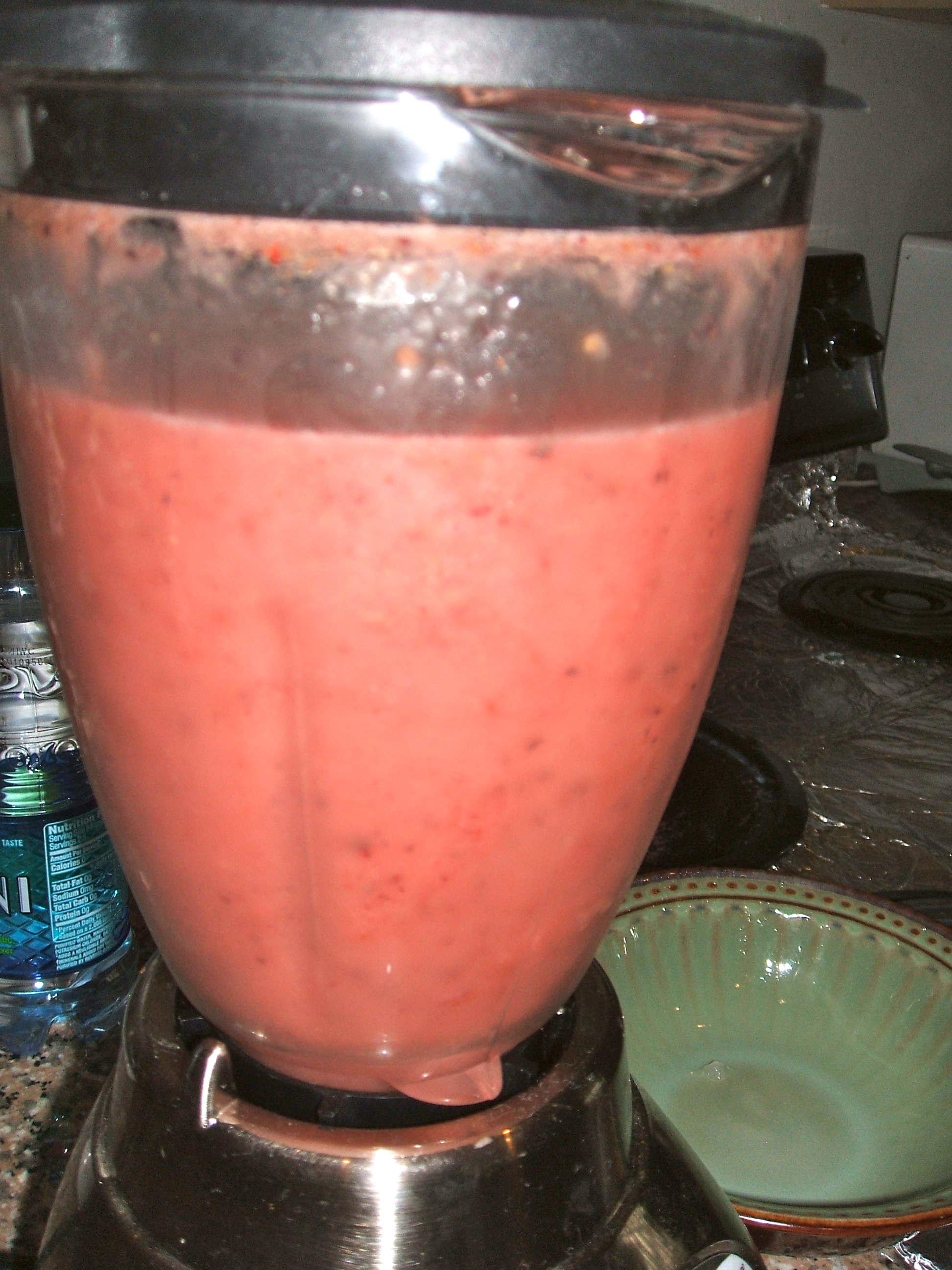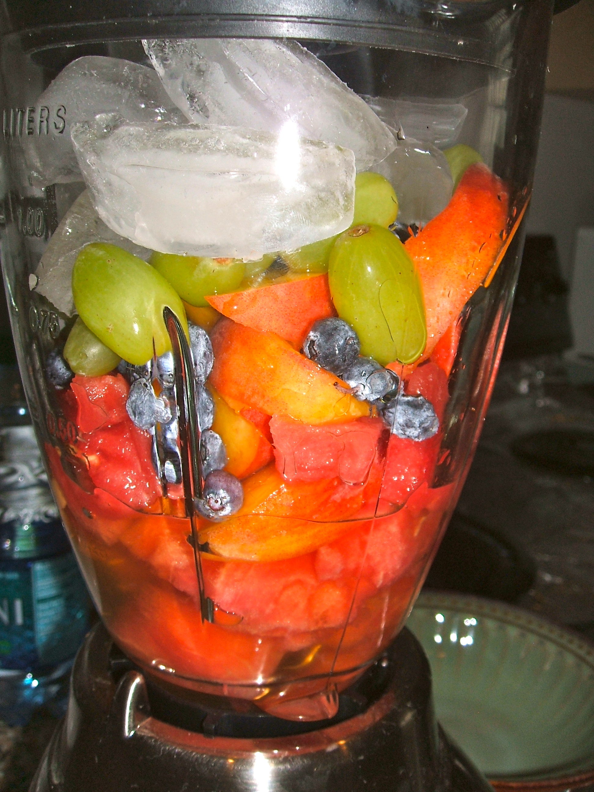 STEP 1: stick all fruits in view into blender with apple juice and ice