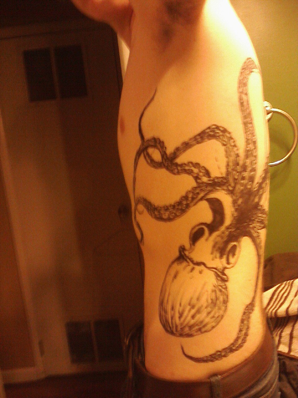 sharpie tattoos ftw. i used to do those alot in highschool xD but that squid is awesome!