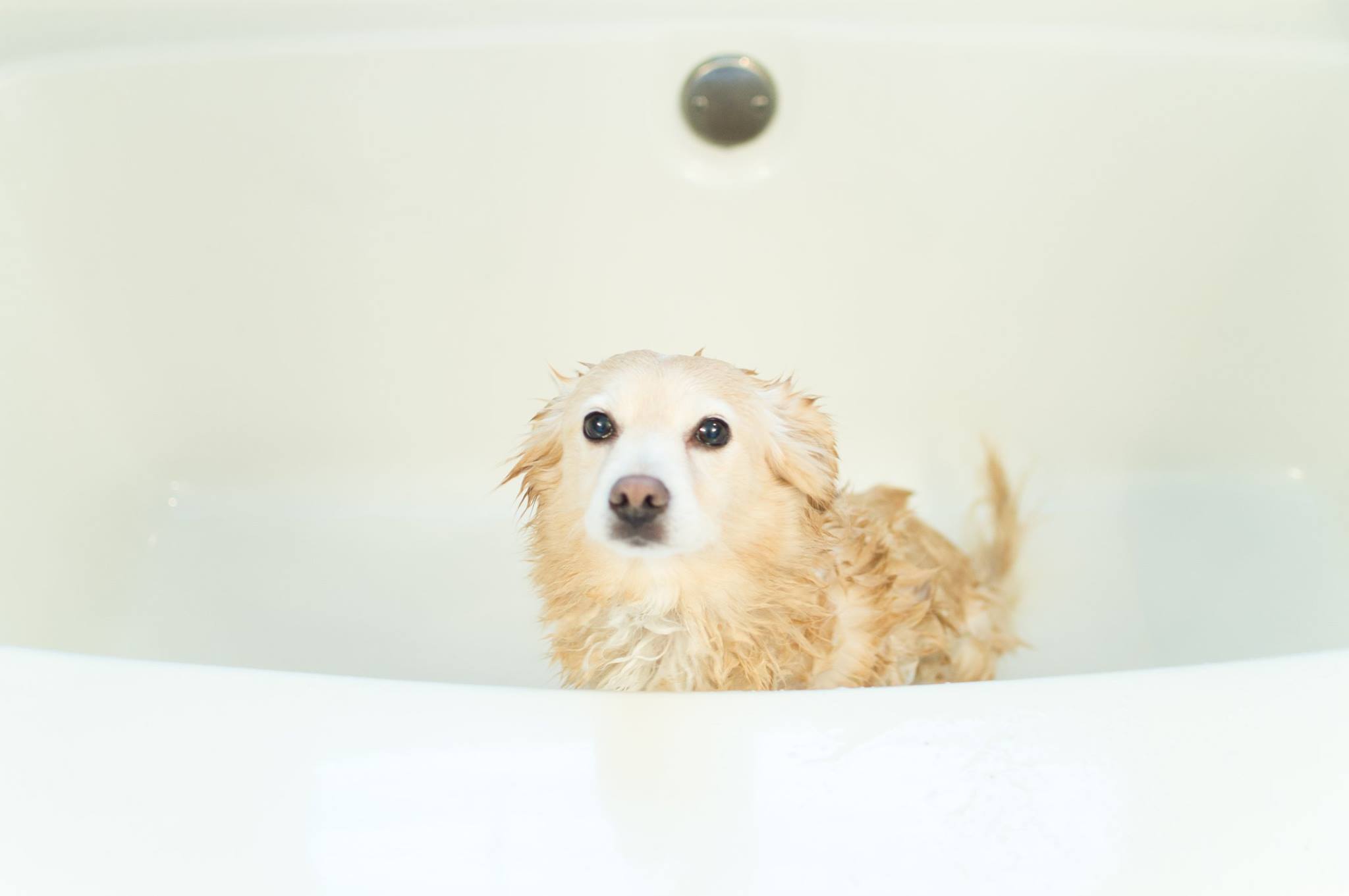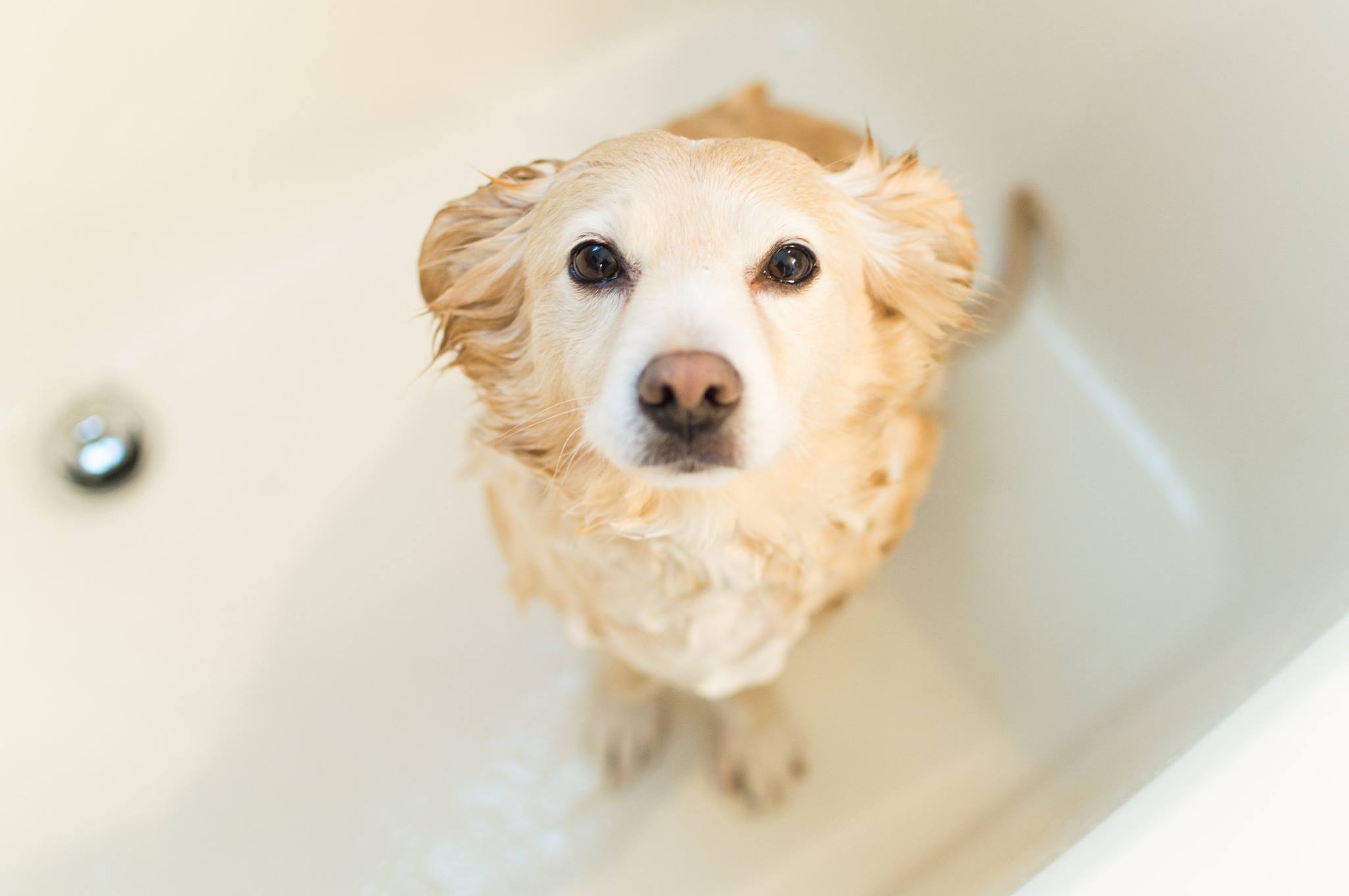 Giving one of my pups a bath and I get this sad look.